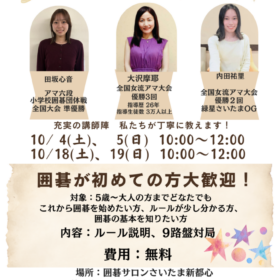 🍀囲碁サロンさいたま新都心にて囲碁入門無料体験会行います🍀 【日時】10月5日(土) 10月12日(土) 10月26日(土) 10:00〜12:00…
